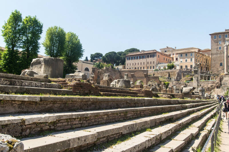 Forum Romanum. Bij de groene deur de entree van de Curia Julia.