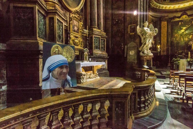 In deze kerk wordt Moeder Teresa in gedachtenis gehouden. Vanuit de binnenplaats hebben we een mooi uitzicht.