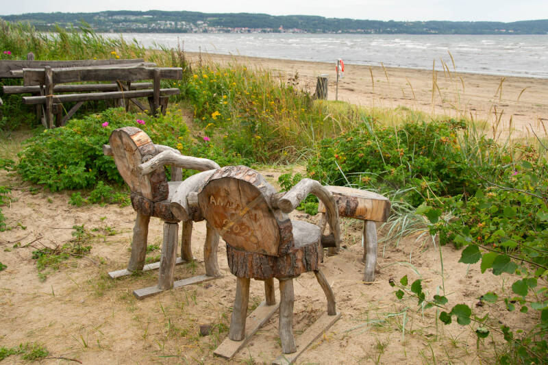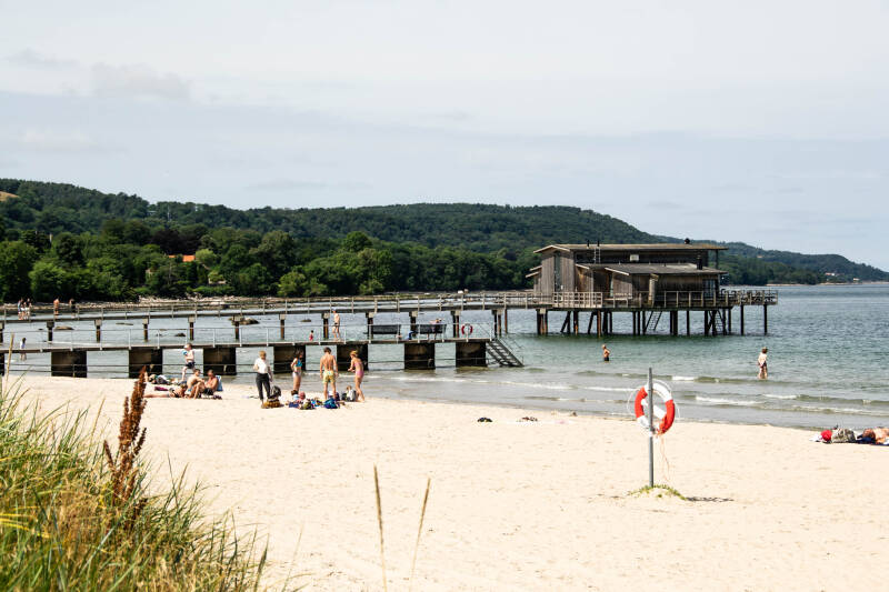 Het strand rond Bastad is groot en heeft een prachtige steiger. Op een andere plek staat bijzonder meubilair en een andere pier om af te sluiten met dreigende luchten boven het strand.