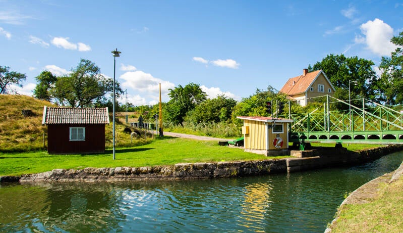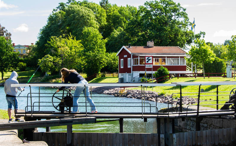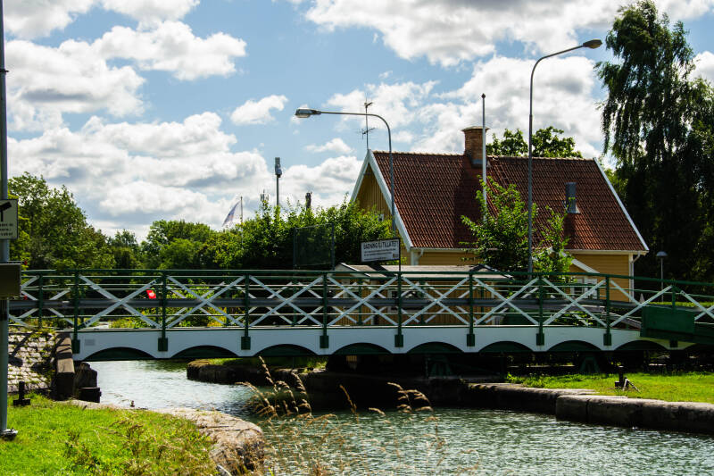 Na genoten te hebben van de omgeving gaat onze reis weer verder. Nu richting Borensberg. Borensberg is een kleine plaats aan het Gotakanaal. Dit kanaal is een beroemd kanaal. het loopt dwars door Zweden heen van Goteborg naar Stockholm en is 190 km lang. Er hebben 58.000 aan gewerkt om het gereed te krijgen. Over de hele lengte heeft het kanaal 58 sluizen. Toevalligerwijs blijken onze buren , die ook in Zweden rondreizen op diezelfde dag ook in Borensberg te zijn maar na op de camperplaats, terwijl wij op de strandbadetcamping staan. We besluiten de volgende dag een feisttocht te maken langs het Gotakanaal. We zullen diverse sluizen tegenkomen vanwege het enorme verval.