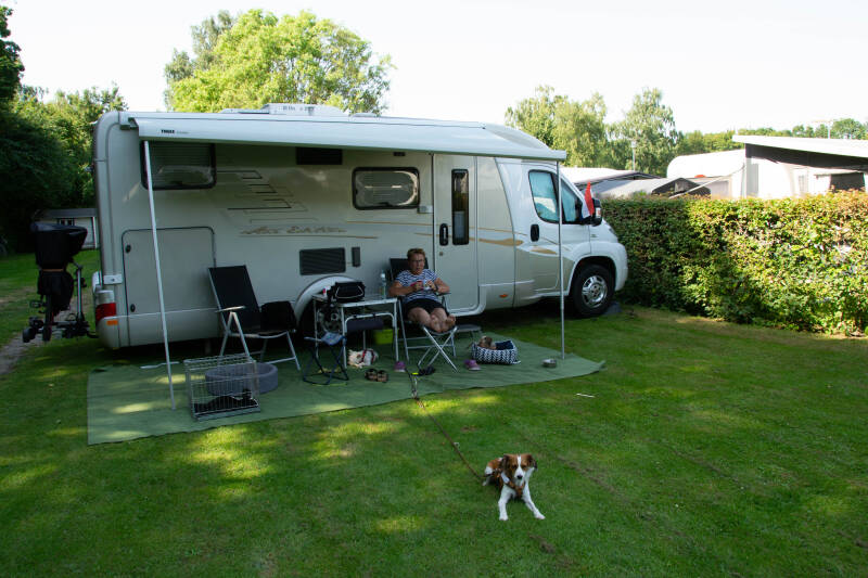 Vanuit Zutphen reizen we via Hamburg en Bremen naar Denemarken. We overnachten in Gyhum. Een vroeger bruisende camping is nu in verval geraakt. Voor een nachtje kan het wel, al ligt de camping wel ver van de snelweg af. Vanaf Gyhum reizen we , via de pont van Puttgarten naar Rudby in Denemarken , door naar onze camping in Sakskobing. Bij de boot moeten we lang wachten. Er zijn mensen die gereserveerd hebben, die gaan toch voor. Op onze reis gaat dit jaar Lois voor het eerst mee. Ze is een kooikerhondje van 6 maanden. Een hele belevenis voor haar samen met zusjes Luna en lotje.
