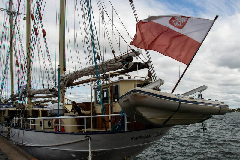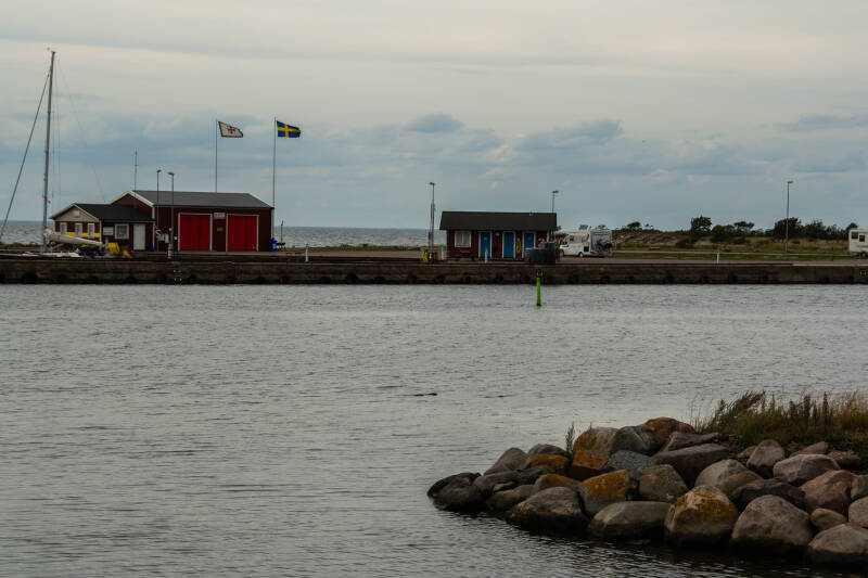 Vanuit Havs Hall rijden we naar het westen naar het vissersdorpje Torekov. Het is een klein leuk plaatsje maar heeft een erg fraaie kustlijn. Het schip met de vlaggetjes bij de kanonnen is een museumschip.