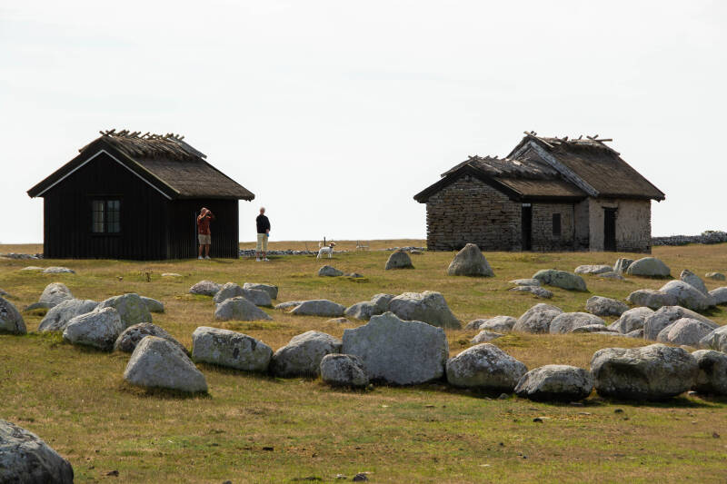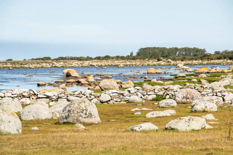 Na de koffie rijden we verder via de kust. We rijden een groot natuurgebied in . Overal zijn de kalsteenrotsen, de raukar. Ze strekken zich uit van Langhammars en DigirhuvudVerderop zien we authentieke vissershuisjes.