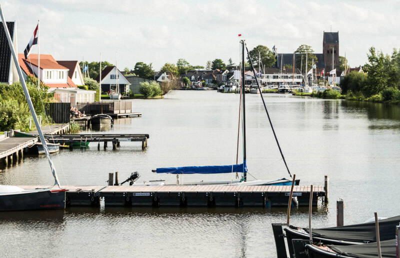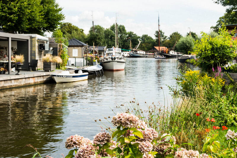 Vanuit Follega ligt Woudsend ook op fietsafstand. De weg ernaar toe is wat saai, maar het dorpje heeft charme. Bij aankomst moeten we halt houden bij de brug. Er varen mooie schepen langs die vastgelegd kunnen worden. Direct aan et water is een heerlijk terras om een kopje koffie te doen. De naam Woudsend komt voor het eerst voor in 1337. In dit dorp kun je een stegenroute lopen. Erg leuk om te doen.