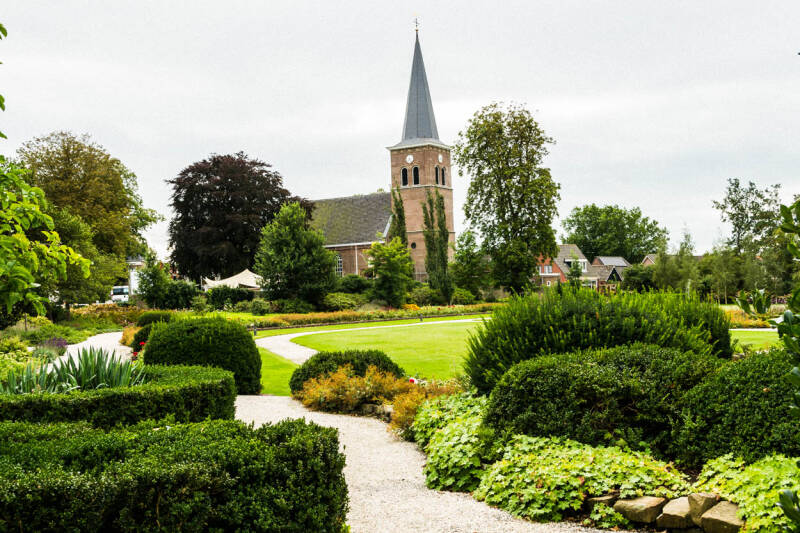 Een bijzondere kerk in Akkrum uit 1835. Ook hier, in Friesland, overal water.