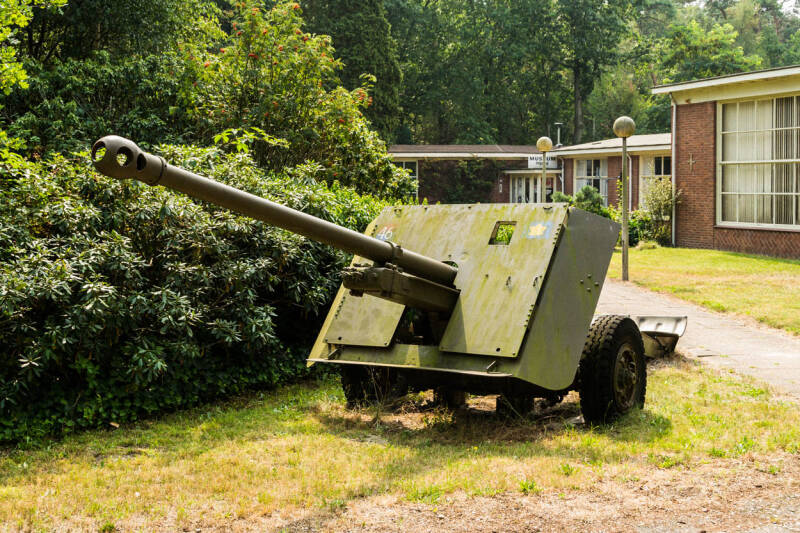 Ook passeren we op onze fietstocht het nationaal oorlogsmuseum. Buiten staan deze legertank en het afweergeschut. Ook in het dorp staat een legertank, gebouwd in 1917 en gebruikt door de Duitsers. Vlak naast deze tank staat de vrolijke bierdrinker zoals dat de zuidelijke mens betaamt.