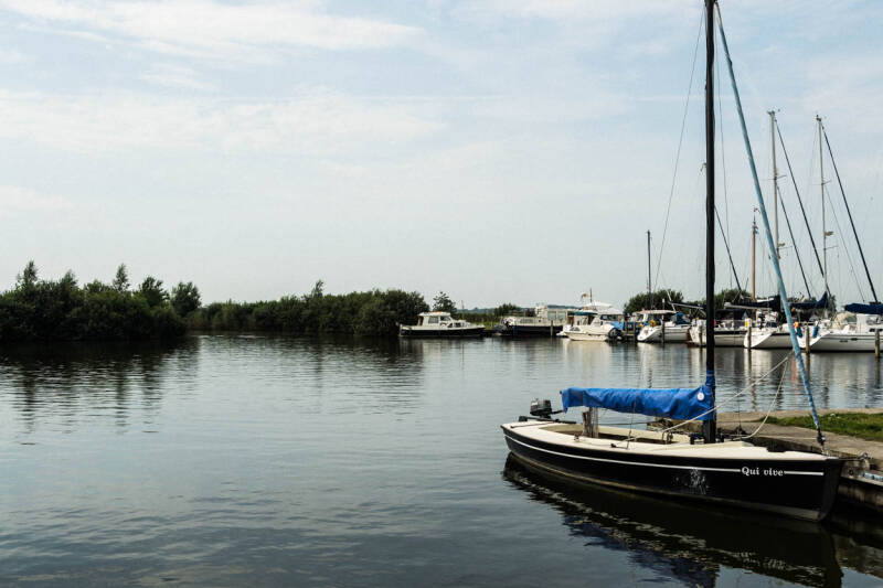 Prachtige sfeer met de mooie platbodem langs de kade.