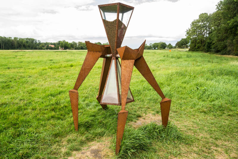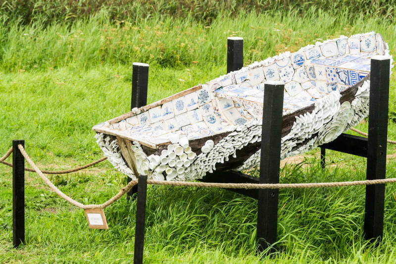 Na een paar mooie dagen in Brantgum rijden we in ons Toppertje zuidelijk naar de Noordoostpolder oftewel de NOPjes. Het is wi nderig, soms een bui, soms droog. We rijden naar de camperplaats Ens. Deze kleine camperplaats is voor de komende dagen onze uitvalsplaat. ( kijk voor een beschrijving bij camperplaatsen). Al gauw blijkt dat we op een mooie uitvalsplaats staan. We gaan die middag nog naar Schokland. Schokland is een voormalig eiland in de Zuiderzee dat sinds de drooglegging van de Nooroostpolder in 1942 deel uitmaakt van het vasteland van de tegenwoordige provincie Flevoland. Vanwege de archeologische rijkdom en geschiedenis is het gebied in 1995 op de Werelderfgoedlijst van Unesco geplaatst. We zien dat er een beeldenroute is uitgezet op het eiland. We besluiten deze route te lopen. We komen bijzondere kunstwerken tegen in de buitenlucht in het landschap. Bijzonder interessant.