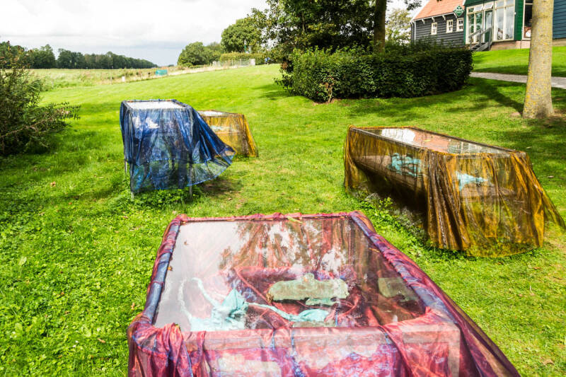Na het bijzondere bezoek aan de Loc-hal gaan we de dag erop naar, waar we eigenlijk voor kwamen, museum de Pont. We hebben kaartjes geboekt in een tijdslot en worden om 10.00u verwacht. Het museum is gevestigd in een oude wolfabriek, niet zo groot, maar mooi en overzichtelijk. De tentoonstelling is erg divers met o.a werk van Marlene Dumas, kleine verrassende lichtbeelden. Het is een verrassend bezoek waarvan ik helaas geen fotos heb. 's Middags vertrekken we richting de camperplaats bij Fort Everdingen. Het lijkt ons leuk om daar een overnachting te doen. Helaas, bij aankomst staat het vol! Het is regenachtig weer en we rijden verder en vinden een overnachtingsplek op CP Biezenhoeve bij Loperskapel. Dit ligt in de buurt van de uiterwaarden van de Lek. Een goede plek bij een boerenbedrijf. 's Middags verken ik de omgeving: uiterwaarden, landelijke beelden van weilanden, dorpjes etc.