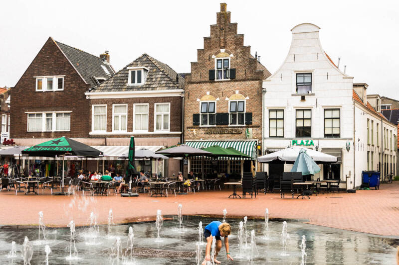 Brantgum is een klein landelijk dorp. We verblijven op camperplaats Veldzicht(links). De akkers zijn mooi omgeploegd en de vorens liggen er goed bij. In dit kleine dorp stuit ik op een bijzondere curiosawinkel, waar ik een prachtige origineel speeldoosje scoor in de vorm van een Pierrot! Vanuit Brantgum is het slechts 6 km fietsen naar Dokkum. Dit vestingstadje is het bezoeken meer dan waard. We fietsen met flinke tegenwind naar Dokkum. Het is wat buiig weer dus bij aankomst moeten we eerst even schuilen. Gelukkig zal de zon zich nog laten zien en hebben we een mooie dag in Dokkum.