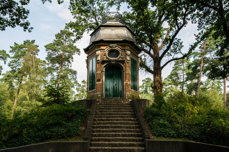 Uiteindelijke bereiken we ons doel: landgoed Ravenhof in Putte. Het blijkt een enorm landgoed te zijn met een heus kasteel, een bijzonder tuinhuis en een fruitmuur. Vanuit het centrum van het kasteel is er zicht op het tuinhuis Glorietta. Het tuinhuis was het pronkstuk. Er gaat het verhaal dat het tuinhuis ook door een ondergrondse gang bereikbaar was. maar...er is nooit bewijs voor geleverd. Het kasteel ligt op een zeer royaal landgoed met prachtige bossen, vijver en wandelpaden. Erg de moeite waard. Uiteraard is er een plekje om iets te drinken.