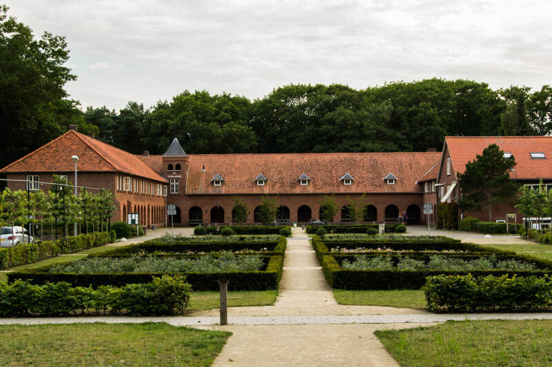 Vanuit de camping is het maar een klein eindje fietsen om de Volksabdij te bereiken. In deze abdij kun je nu overnachten. We deden dat eerder met de fiets. Leuk om te doen. Je kamer is een vroegere kloostercel. De abdij ligt prachtig in de bossen.