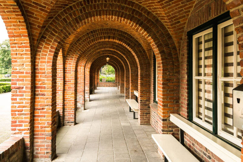 Zuilengang Volksabdij Bossen rondom de Abdij.