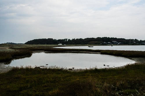 De camperplaats ligt ongeveer een kwartiertje lopen van het strand. Het blijkt een bijzonder strand te zijn waar de ondergrond zo hard is dat er met auto's en camper op het strand gereden wordt. Ook wordt er "wad gelopen" naar een ander eiland aan de overkant. Wij wagen ons daar niet aan omdat we het gebied onvoldoende kennen.