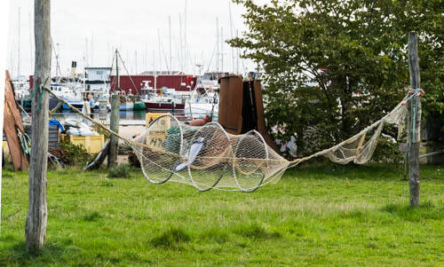 Vanuit de camping willen we ook graag naar het noordelijkste puntje Grenen. Op deze plek botsen de twee zeeen Skagerak en Kattegat tegen elkaar. Dat willen we graag zien. Via een prachtig stuk strand, met weer een aantal bunkers, komen we daar. Terug gaan we met de strandtrein terug. De volgende dag gaan we op weg naar de Frydenstrandcamping. Deze camping ligt aan het Limfjord. We rijden via Frederikshaven en houden een tussenstop bij de haven van Seaby. Een gemoedelijke kleurrijke haven.