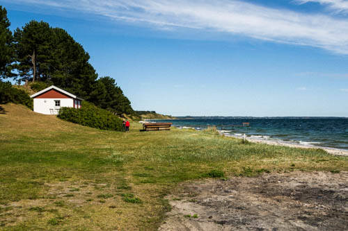 De Rosenvoldtcamping is de laatste stopplaats op Jutland. Morgen rijden we door naar het eiland Funen, naar Bogense. Via de grote brug rijden we over de , betaalde, tolbrug naar het eiland Funen. Na de brug rijden we via binnenwegen naar Bogense. We koersen op Bogense strandcamping. We waren hier eerder. Een mooie ruime camping op 500m van het strand. Steeds zoeken we weer het water op. We vinden het mooi, afwisselend. Er is altijd wat te zien. Ook vaak bijzonder licht.