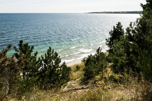 Vanuit de Frydencamping gaan we op weg naar Knebel naar camping Solystgaard. Via de E45 en weg 21, via Ronde, rijden we naar het nationale park Molsbjerge. Het is een prachtig heuvelachtig gebied. Ook de camping is heuvelachtig en ligt aan de Ebeltoft Vig die grenst aan het Kattegat. We hadden hier willen fietsen, maar dat gaat ons niet lukken. Het is te steil voor onze fiets met aanhanger en zijn berijder! Op de camping kiezen we voor een plaats op de top met prachtig uitzicht op het water. Echt geweldig! Langs het water is er een kiezelstrand met vele baaitjes..