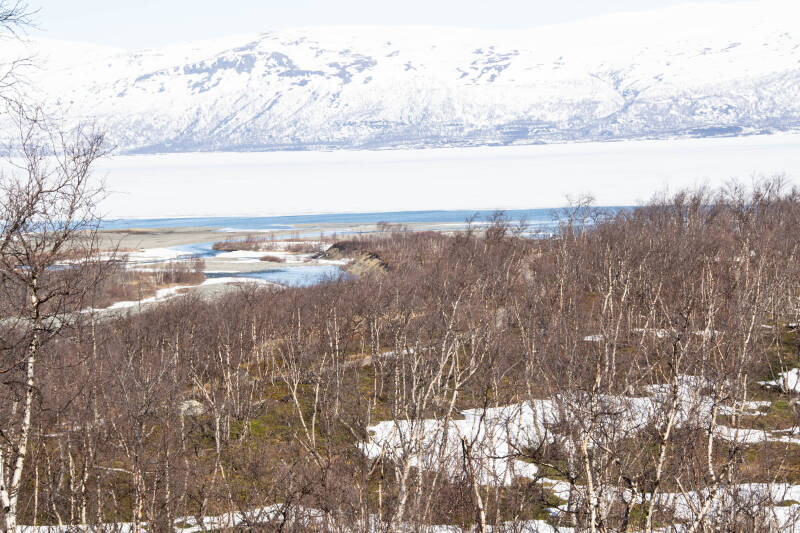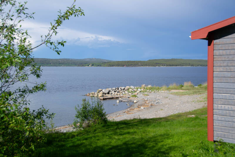 Omdat we doelgericht naar de Lofoten willen gaan , vertrekken we ook de volgende dag weer, nu richting Storuman. Onderweg pauzeren we bij een mooi meer. Na een lekkere kop koffie met koek rijden we verder en zullen we de eerste sneeuwsporen tegenkomen. Een voorbode van de witte wereld waar we later, noordelijker, in terecht zullen komen.