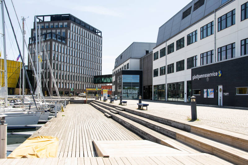 Wanneer we doorfietsen richting de haven zien we ook een moderne kant van Kalmar.
