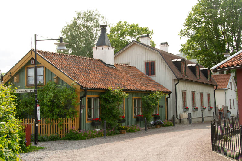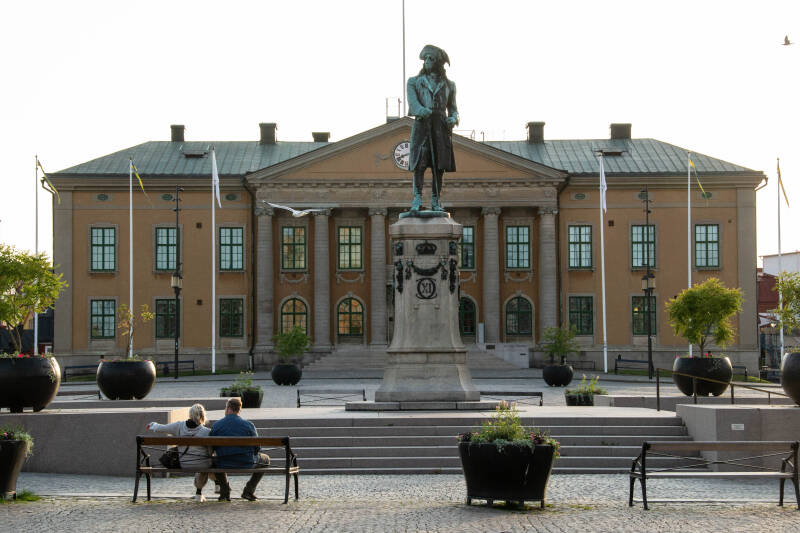 Onze camperplaats ligt ver buiten het centrum van Stockholm. Er is een busverbindingen, maar wij gaan op onze Pino. Het is droog maar er is veel wind. Het is nog wel een uitdaging om op onze tandem door deze stad te fietsen met zijn heuvels en drukke verkeer. We fietsen over een hoge brug waardoor we goede "luchtopnamen "kunnen maken van een stukje van de stad. We hebben er voor gekozen om ons te concentreren op de oude stad. Daar staat het koninklijk paleis waar we het wisselen van de wacht meemaken. Een heel spektakel waarvoor honderden bezoekers klaar staan. Ook zien we de oude kleurrijke gebouwen en het Nobelmuseum waar de uitvindingen van de Nobelprijswinnaars bewaard worden.