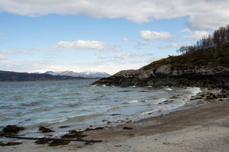 Op weg naar de Lofoten passeren we eerst de Vesteralen. Daar zijn we op zoek naar een camping. Echter alle campings waar we willen overnachten zijn gesloten. We zijn nog te vroeg in het seizoen kennelijk. We overnachten daarom op een parkeerplaats. Er zijn meerdere campers en er is een toilet. De andere ochtend vervolgen onze reis richting Bjerkvik, de eerste plek in de Vesteralen. We merken het meteen, de wegen zijn smaller, de bergen omringen ons en voortdurend rijden we over een brug. Onze eerste overnachtingsplaats is Hammerstad. Een kleine camping aan het fjord. De camping heeft een aantal camperplaatsen en huisjes. Wanneer we ons inschrijven biedt de eigenaar van de camping direct vis aan die hij die dag gevangen heeft; kleinschalig en persoonlijk, geweldig.