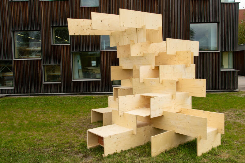 Na Lulea, reizen we verder langs de kust naar Umea. Een rit van 266 km. Van lieverlee wordt het droog en komt de zon. Er staat veel wind. Desondanks maken we met de honden een fietstochtje. De volgende dag is het bewolkt maar droog. We stappen op de fiets naar het centrum. Dat is nog een flink stuk fietsen maar het lukt. We fietsen langs de rivier. Umea is een universiteitsstad. Dat merken we wanneer we de universiteit passeren. We zien prototypes van architectuur waarna we naar de stadskerk gaan. Op de terugweg rijden we door een beeldenpark met bijzondere beelden.