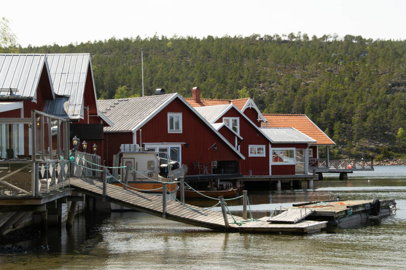 Na een paar mooie dagen in dit bijzondere gebied verlaten we de Hagakusten en vinden een overnachtingsplek in Harnosund. We komen op een terrassencamping terecht. Camping is eenvoudig, maar het uitzicht, we staan op de "derde verdieping", is geweldig. Soms passeert de vakantieboot die een rondvaart maakt door het fjord. Naast de camping staat een bijzonder huis.
