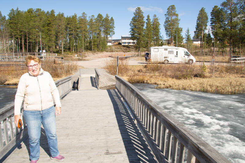 In Jokkmokk gaan we ons installeren op Arctic Camp Jokkmokk. Als we om 16.00u aankomen is de camping net gesloten maar een vriendelijke beheerder wijst ons een plek die wel toegankelijk is en stroom heeft. Voordat we ons gaan installeren vragen we naar het dichtstbijzijnde ziekenhuis omdat er op mijn borst een vreemd plekje zit. Overleg met de huisarts heeft een conclusie opgeleverd maar hij raadt aan om in Zweden een arts te raadplegen. We worden snel en vriendelijk geholpen. De arts onderzoekt me en zegt dat het waarschijnlijk conflicterende adertjes zijn die deze plek veroorzaken. Ze verwacht dat het mettertijd zal verdwijnen. Exact hetzelfde gaf onze huisarts aan. We zijn gerustgesteld. Later blijkt de diagnose ook te kloppen en verdwijnt de plek. Gelukkig.