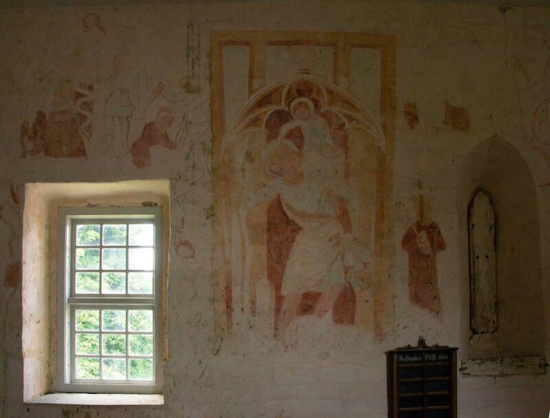 Via een vakwerkhuisje waar , door lokale dames gemaakte producten worden verkocht, gaan we naar de andere kerk die hier ook staat. Deze kerk wordt nog wekelijks gebruikt voor kerkdiensten.